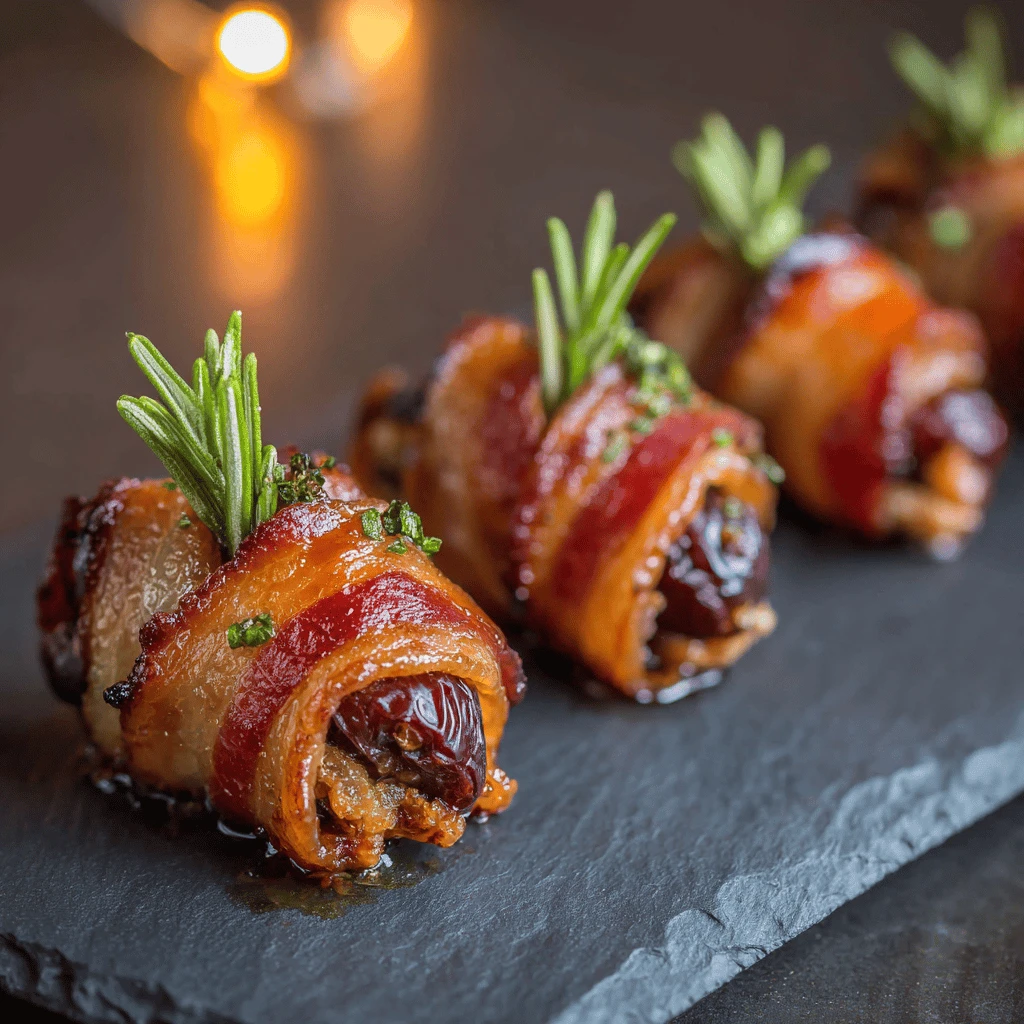 - Platter Presentation: Arrange the bacon-wrapped dates on a platter with fresh herbs, such as rosemary or thyme, for an elegant presentation.