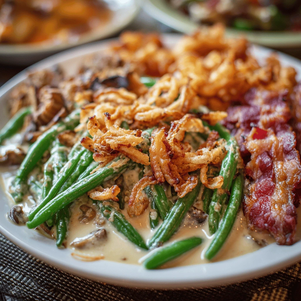 Serving Suggestions: Serve the bacon-wrapped green bean casserole hot and fresh. Garnish with chopped fresh parsley or chives for a pop of color. This dish pairs well with other Thanksgiving classics, such as turkey, stuffing, and mashed potatoes. It’s also a great side dish for potlucks and other holiday gatherings.
