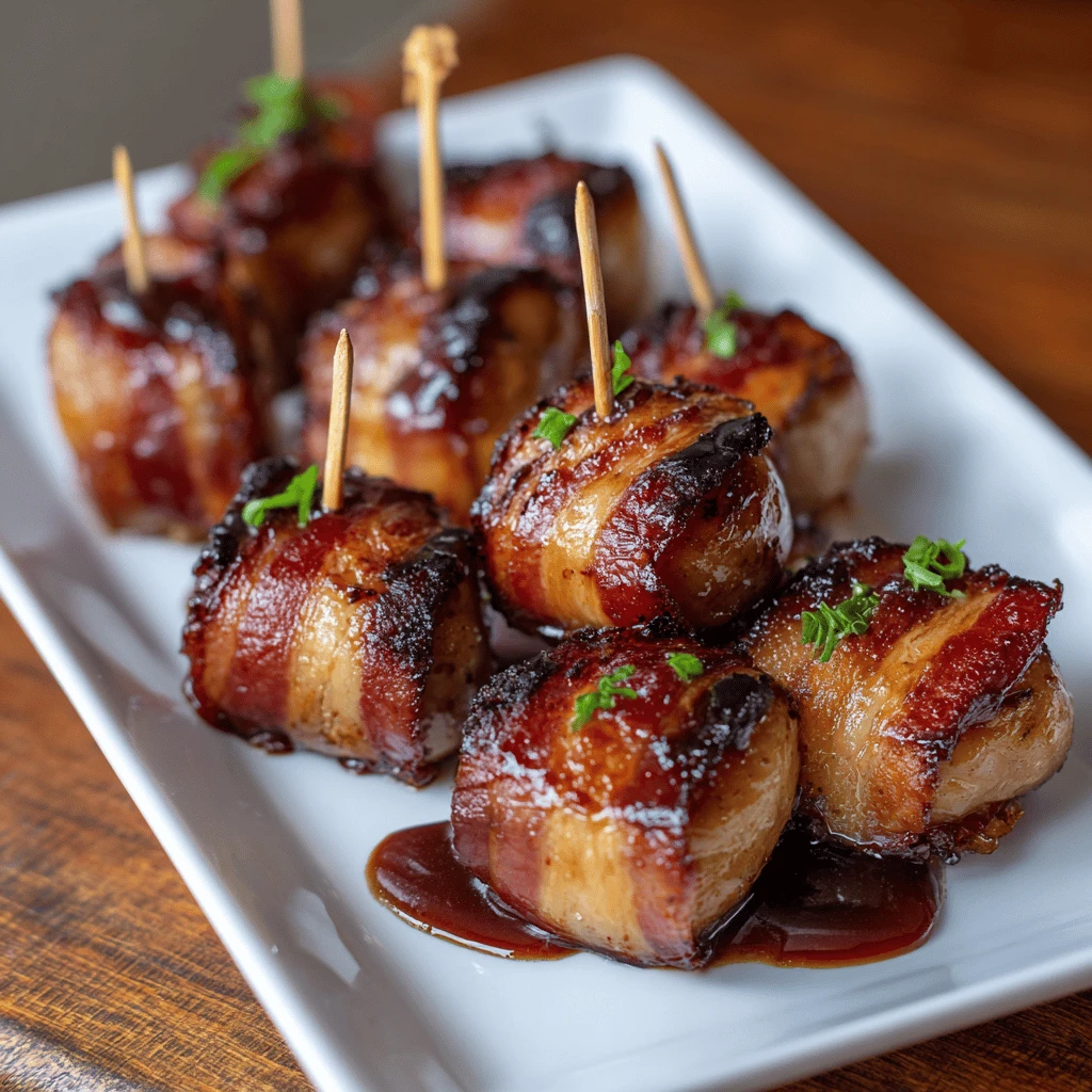 - Arrange Artistically: Arrange the bacon-wrapped water chestnuts on a platter in a decorative pattern.