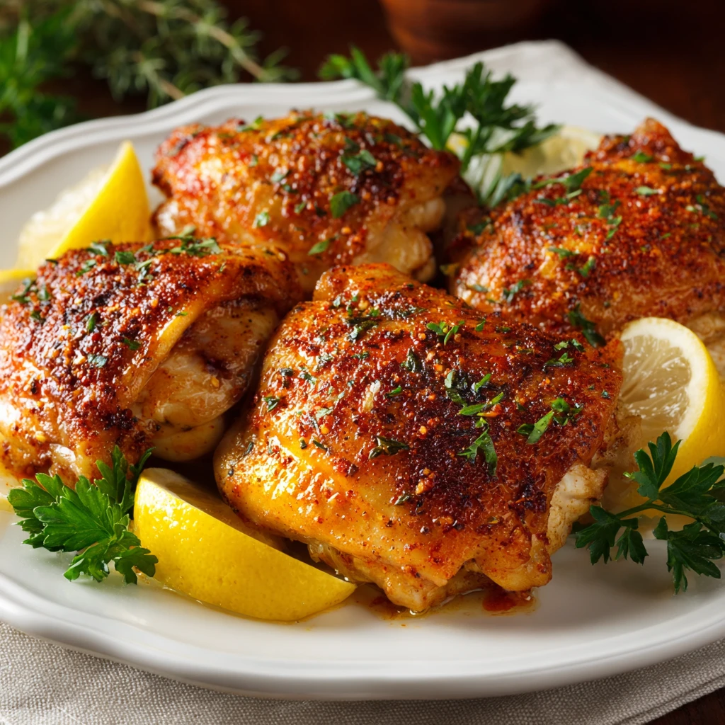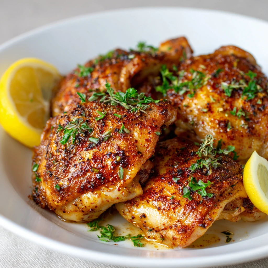 Add a bright, citrusy twist to your baked chicken thighs by incorporating lemon and fresh herbs.