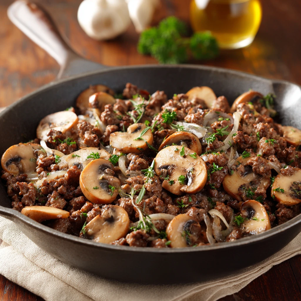 Beef and mushroom skillet is a versatile dish. Feel free to adapt it to your taste. Many additions and variations exist.
