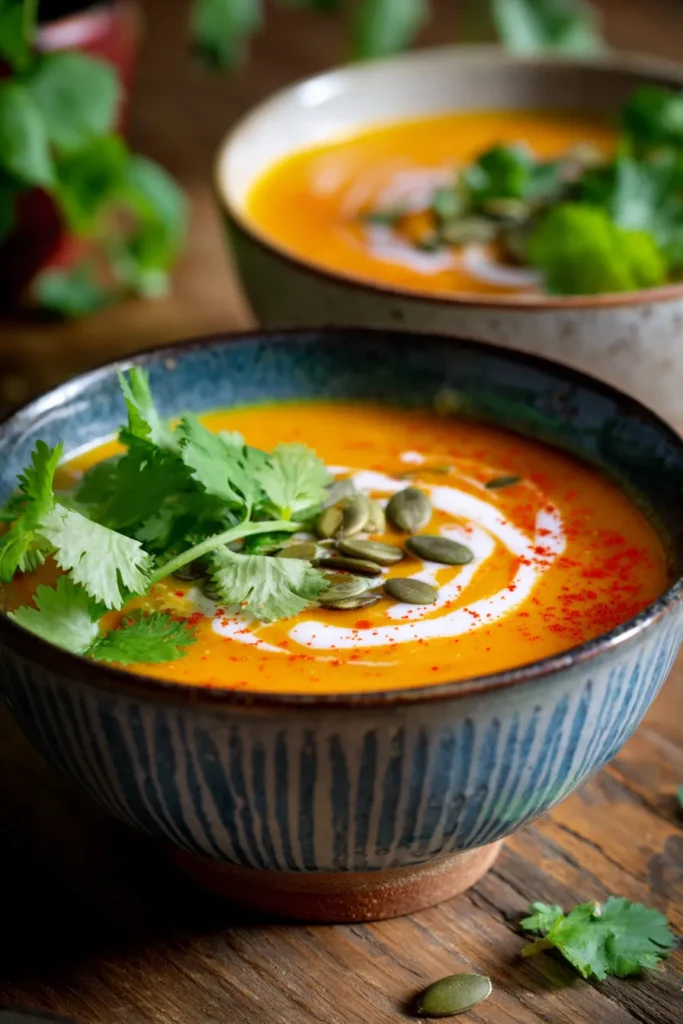- Optional garnishes: fresh cilantro, toasted pumpkin seeds, a swirl of coconut cream