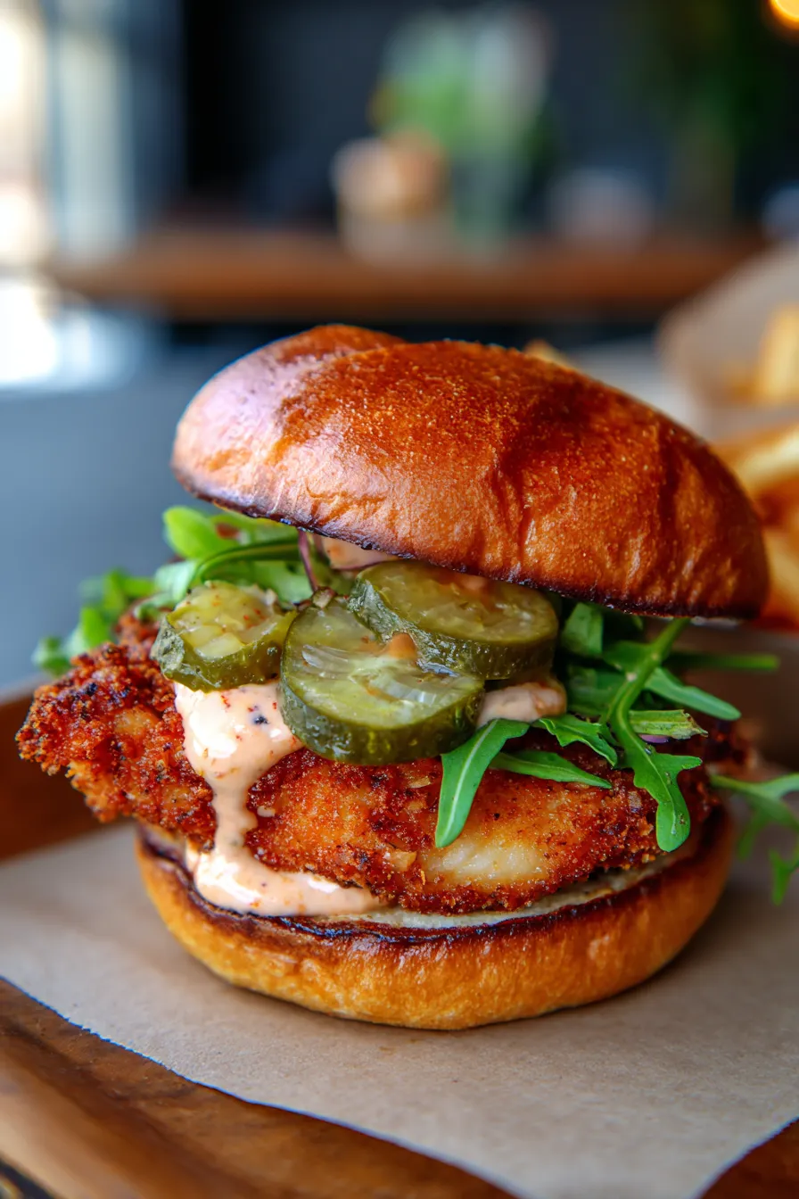 - Step 7 7. Assemble Sandwiches: Spread mayonnaise or spicy mayo on both sides of toasted brioche buns. Layer with lettuce, crispy chicken, and plenty of pickle slices. Serve immediately and enjoy!