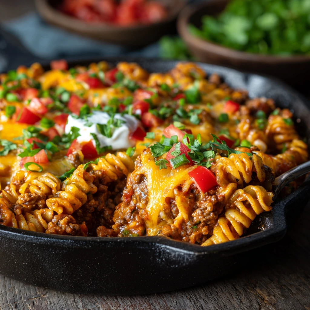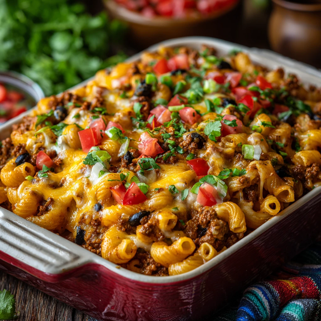 This Cheesy Taco Pasta Bake is a crowd-pleasing dish that’s easy to make and packed with flavor.