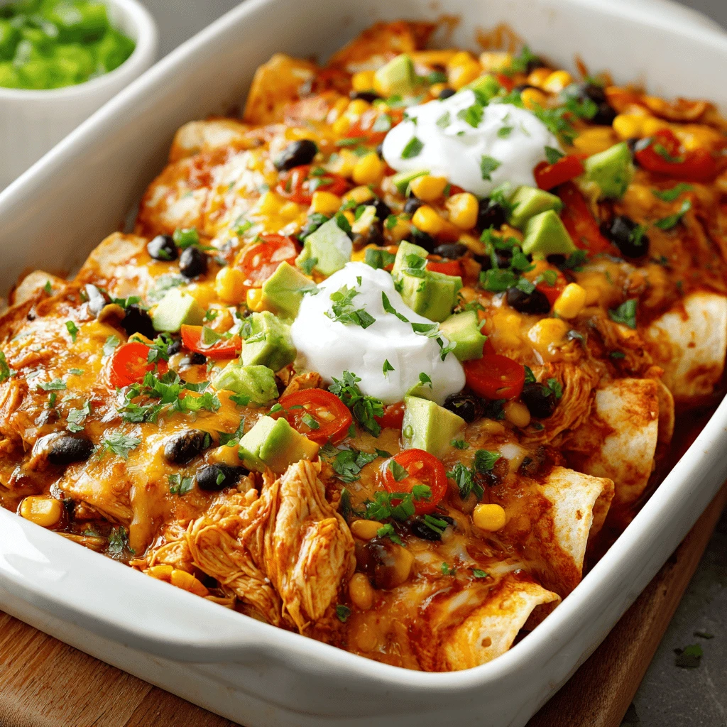 For the chicken, rotisserie chicken is a convenient and flavorful option. If cooking your own, be sure to not overcook it. Dry chicken will result in less appetizing enchiladas.