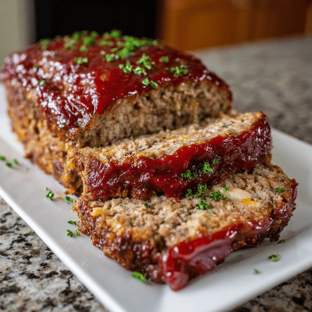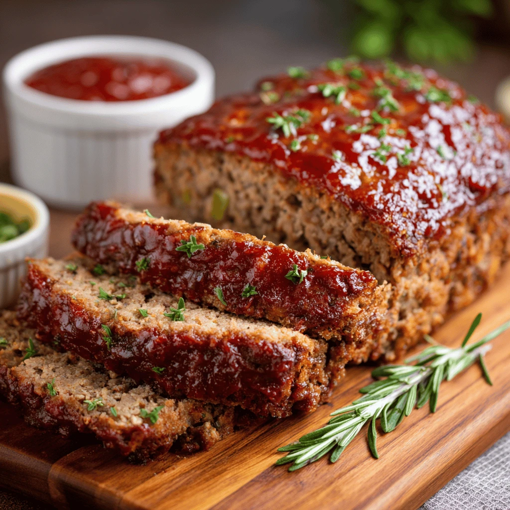 The glaze adds a touch of sweetness and tanginess that complements the savory meatloaf.