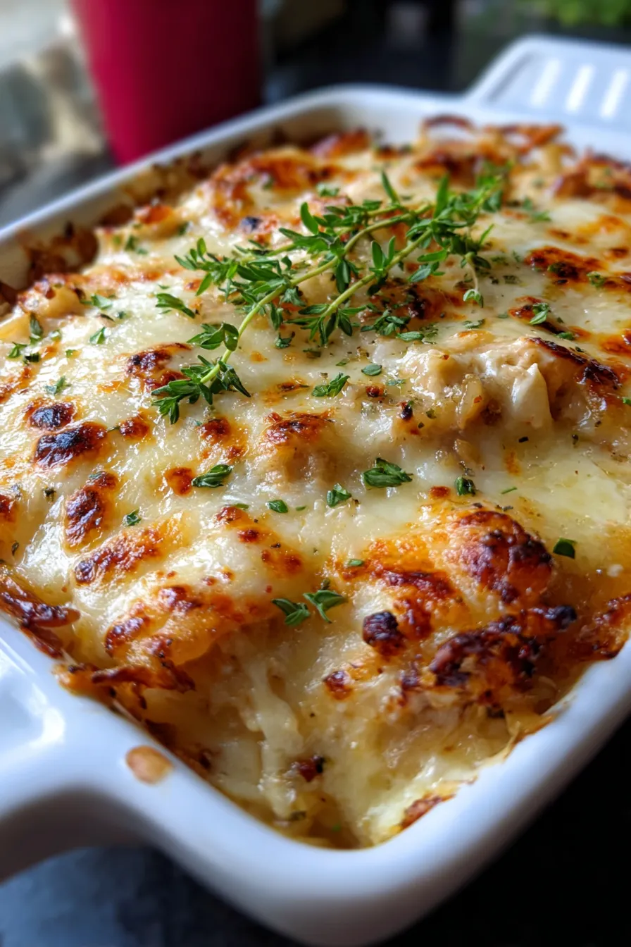 Cozy French Onion Chicken Orzo Casserole – Easy Dinner!