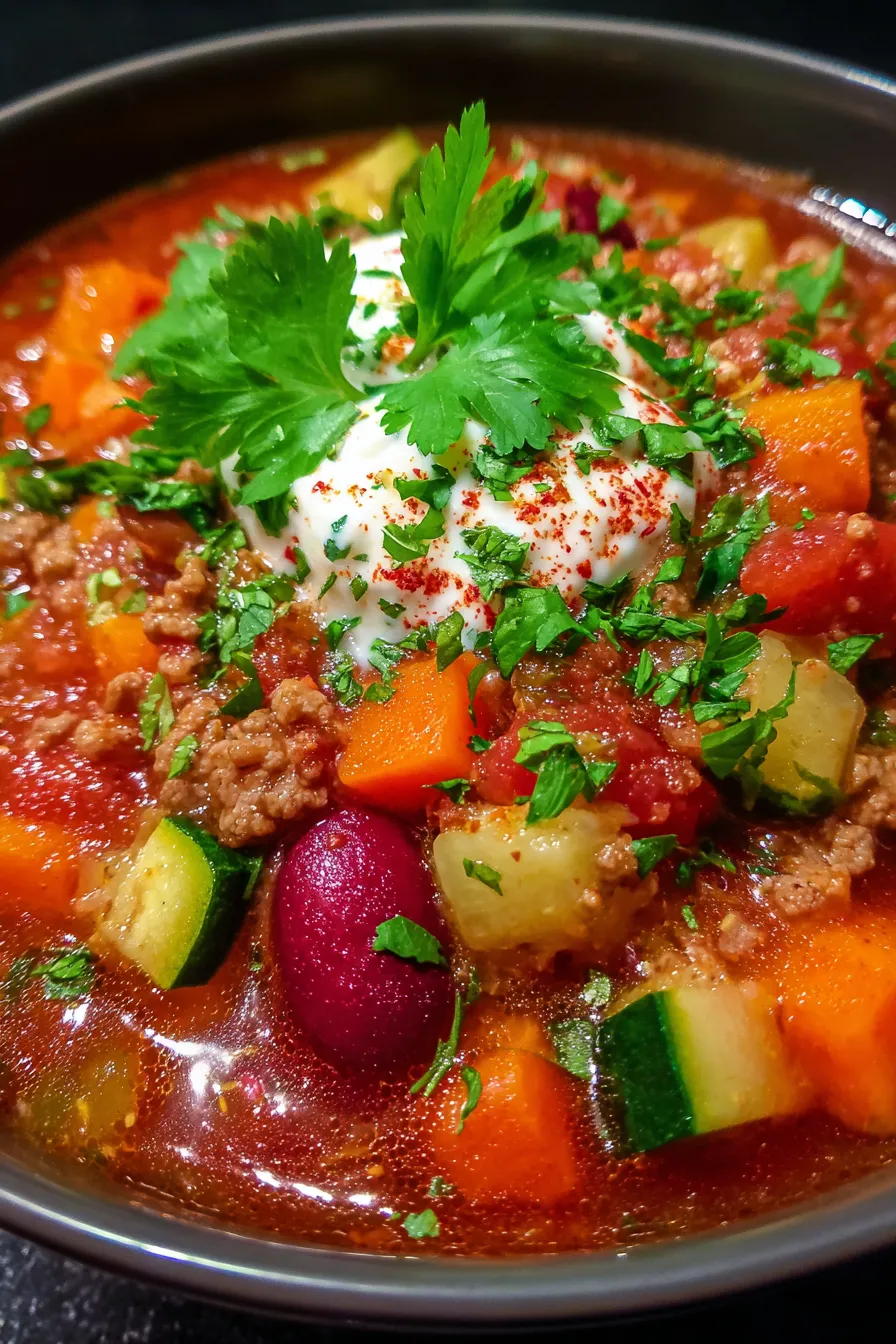 This isn’t just any chili; it’s a vibrant, vegetable-packed symphony of flavors that effortlessly simmers to perfection while you go about your day. The slow cooker works its magic, tenderizing the meat and allowing the rich, savory broth to infuse every single ingredient. It’s the ultimate comfort food, delivering warmth and satisfaction with every spoonful.