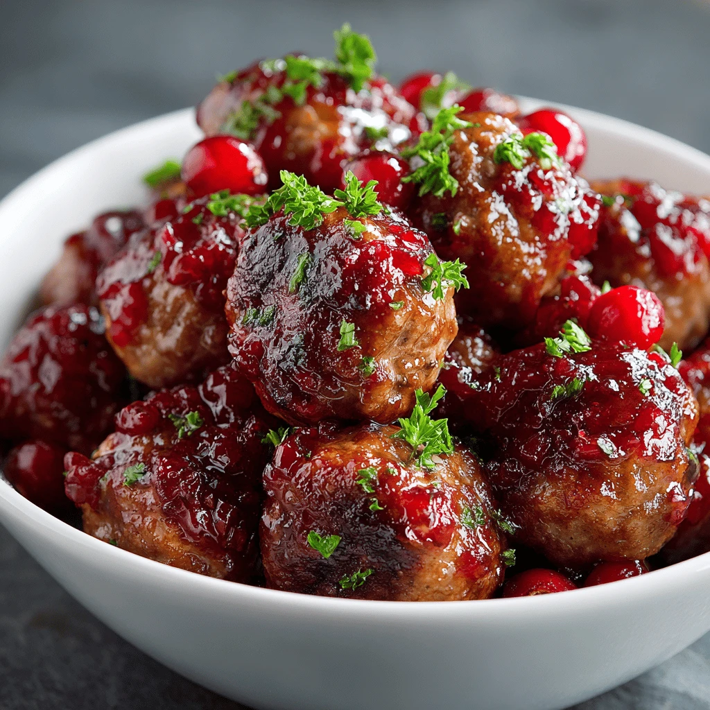 Garnish the cranberry glazed meatballs with fresh herbs, such as parsley, thyme, or rosemary. A sprinkle of toasted sesame seeds can add a nutty flavor and visual appeal.