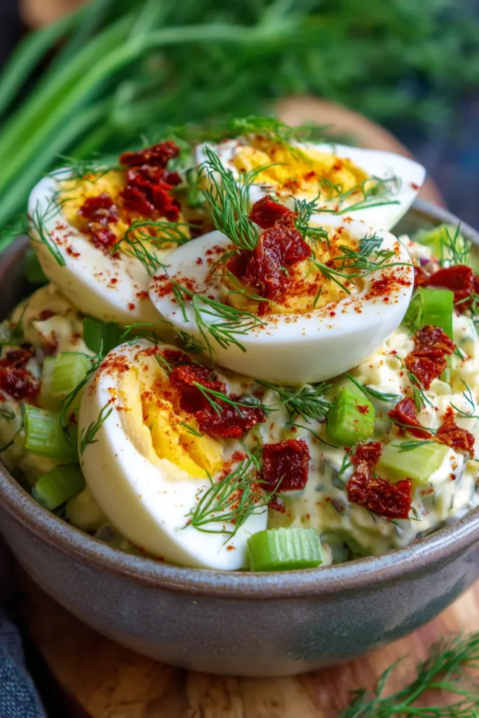 - Vegan: While this specific recipe relies on eggs, you can create a similar flavor profile with a chickpea salad. Mash chickpeas instead of eggs, use vegan mayo, and incorporate the sun-dried tomatoes, celery, and herbs.