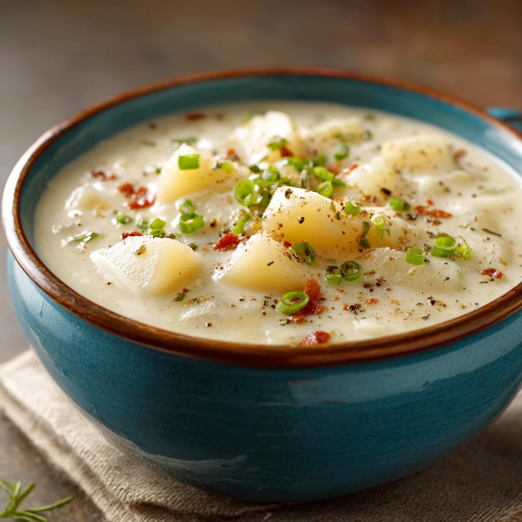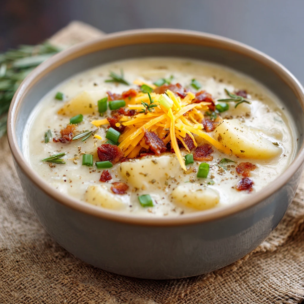 7. Serve and garnish: Ladle the soup into bowls and top with sour cream (optional), crumbled bacon, shredded cheddar cheese, and chopped green onions. Enjoy!