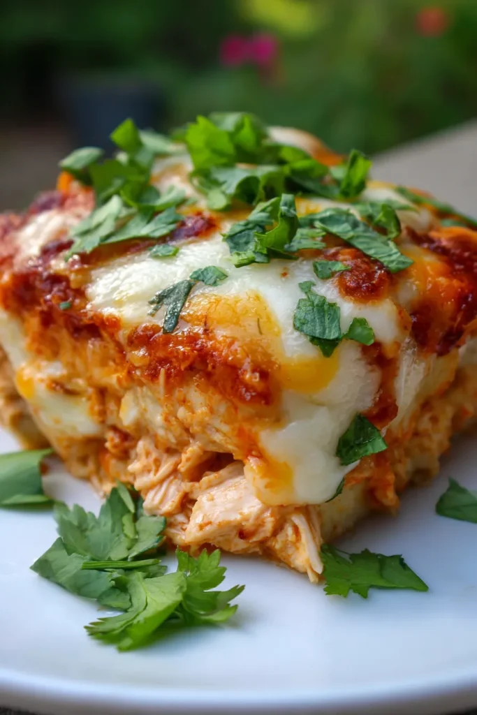 - Incredible Flavor Layers: This isn’t just a basic casserole. We’re talking about succulent shredded chicken infused with aromatic spices, bathed in a rich, tangy enchilada sauce, all nestled amongst soft tortillas and blanketed in a glorious layer of melted, bubbly cheese. Every forkful is a fiesta!