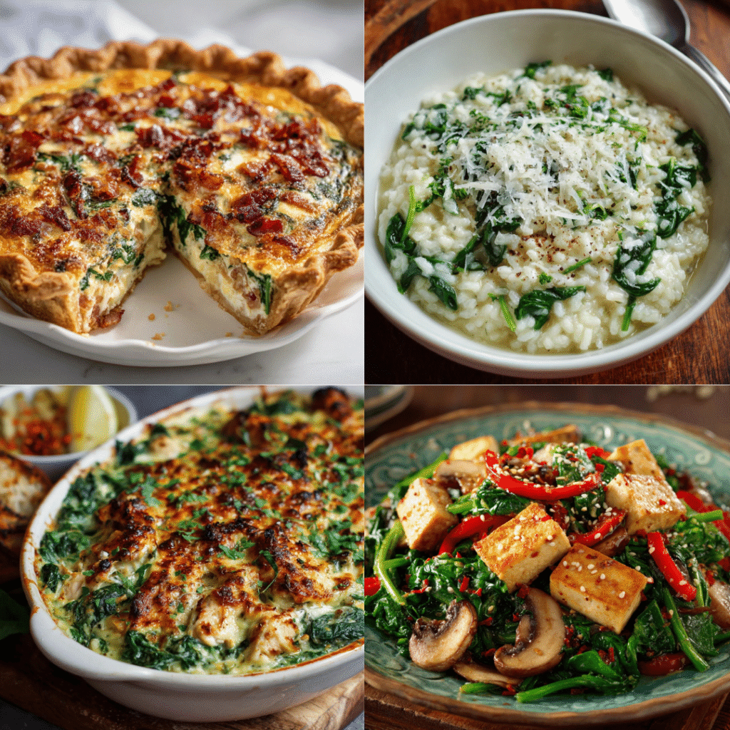 Flavor-Packed Spinach Recipes You’ll Want Every Night November 11, 2025 • Olivia Smith • DINNER 0 Spinach and Shrimp Alfredo Spinach and Mushroom Stuffed Peppers Spinach and Parmesan Risotto Spinach and Chicken Casserole Spinach and Tofu Stir-Fry Spinach and Bacon Quiche Love this recipe? Bring it home! Save it to your collection or share the flavor with your friends. ♡ Save Recipe 0 Pin It 0