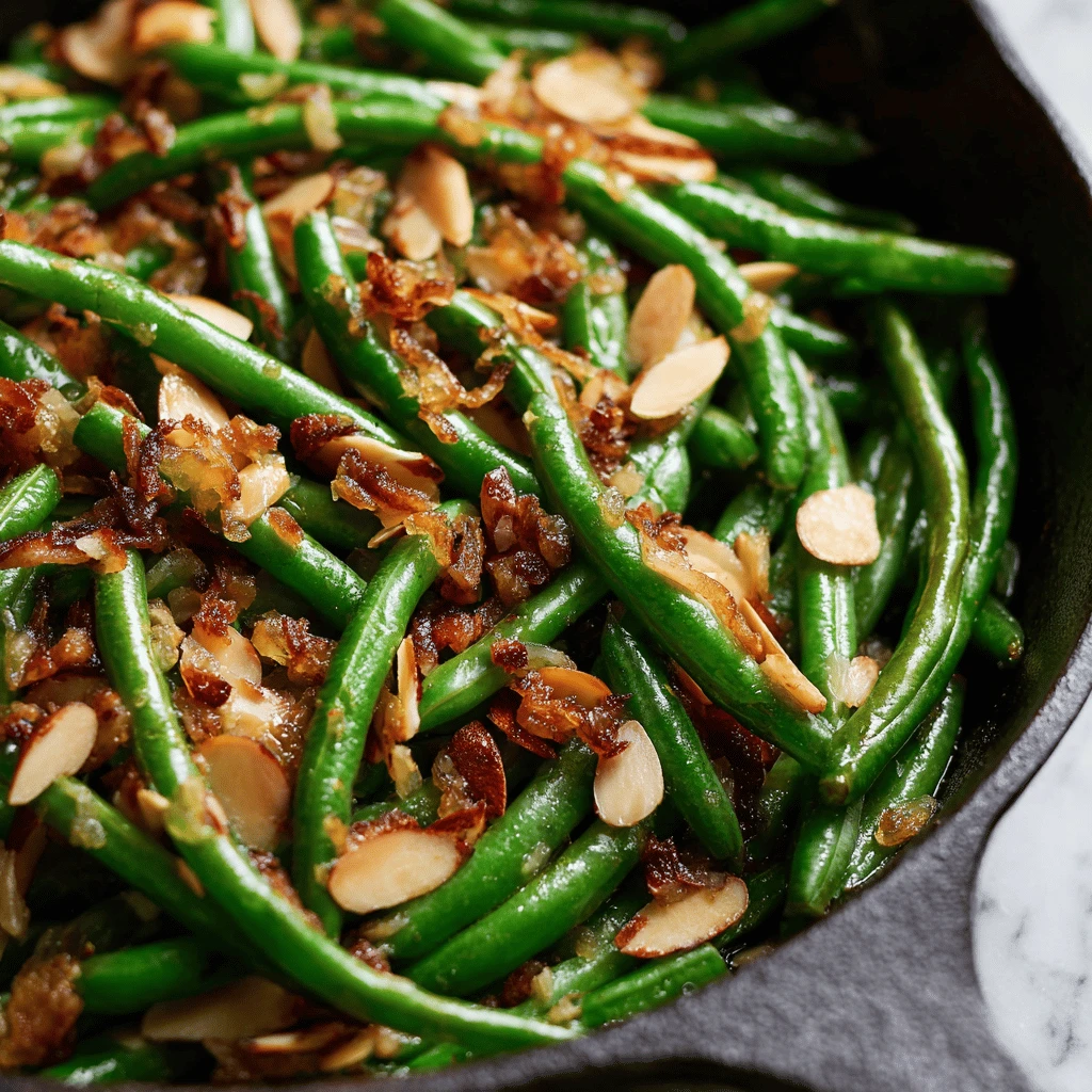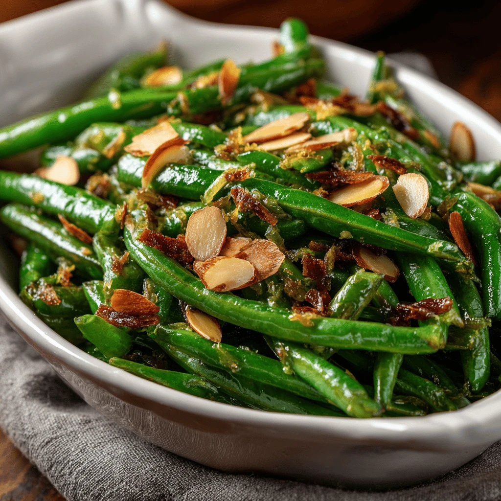 Green Bean Almondine is best served immediately, while the green beans are still crisp-tender and the almonds are crunchy. Garnish with a sprinkle of fresh parsley or a lemon wedge for added visual appeal.