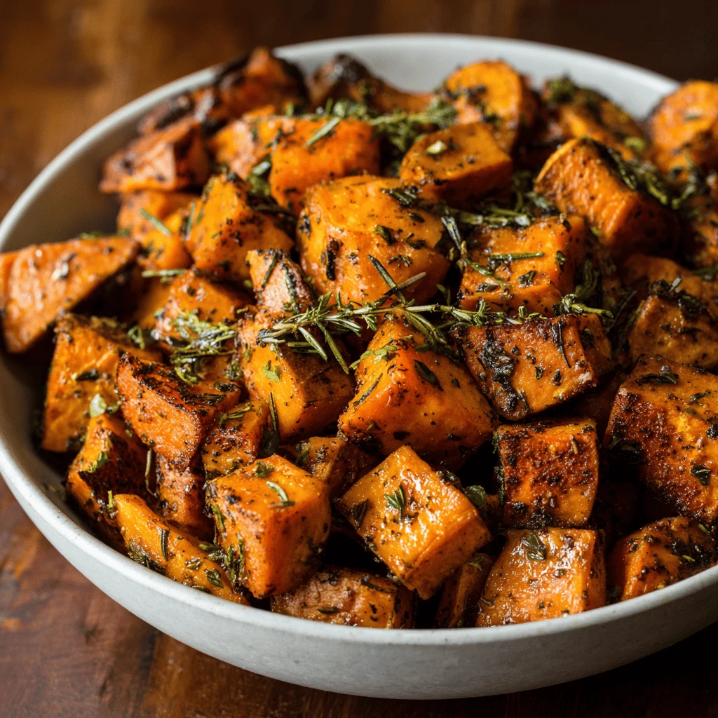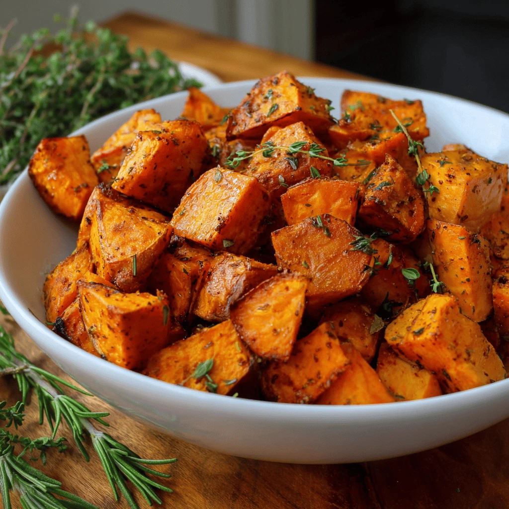 These sweet potatoes are flavorful, easy to make, and a crowd-pleaser. They offer a healthy and delicious alternative to traditional sweet potato casseroles loaded with sugar. The combination of rosemary, thyme, and sage complements the sweetness of the potatoes beautifully.