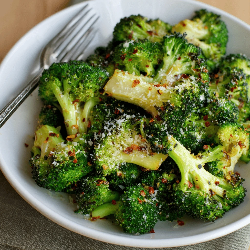 Tossing the broccoli in olive oil and spices and spreading it in a single layer on the baking sheet is also vital. Overcrowding creates steam, which leads to soggy broccoli.