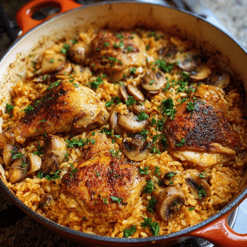 - Mushroom Chicken and Rice: Sauté sliced mushrooms with the onions and garlic for an earthy and savory flavor.