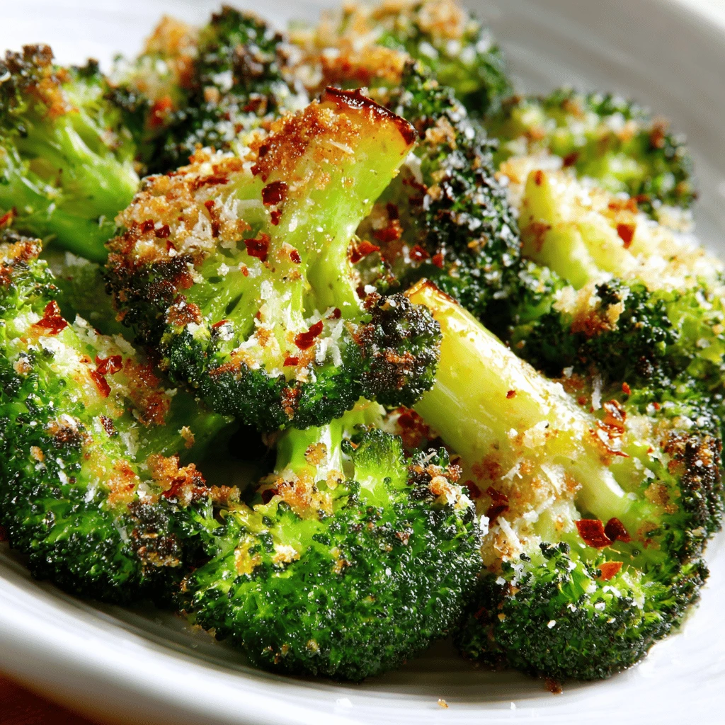 This broccoli is a fantastic accompaniment to grilled chicken, steak, or fish. It also complements vegetarian dishes like pasta or grain bowls. The crispy Parmesan crust adds texture and flavor to any meal.