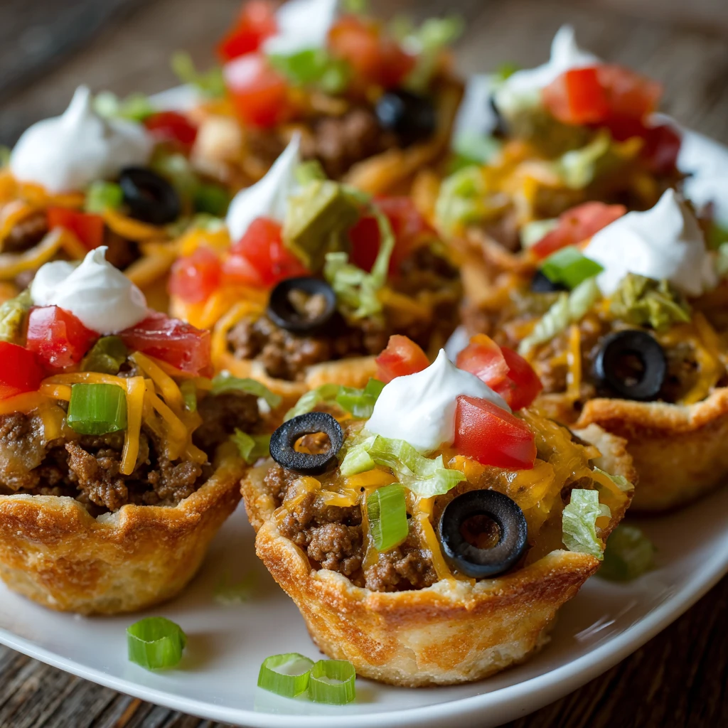 Use mini muffin tins to create bite-sized taco cups. These are perfect for parties and appetizers.