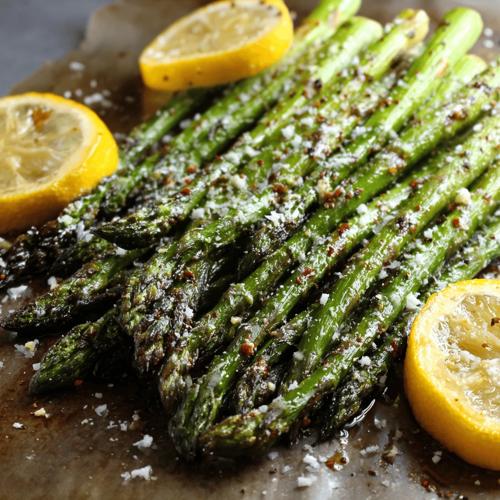 A sprinkle of grated Parmesan cheese is a classic addition to roasted asparagus. The salty, umami flavor of the Parmesan complements the brightness of the lemon and the earthiness of the asparagus.