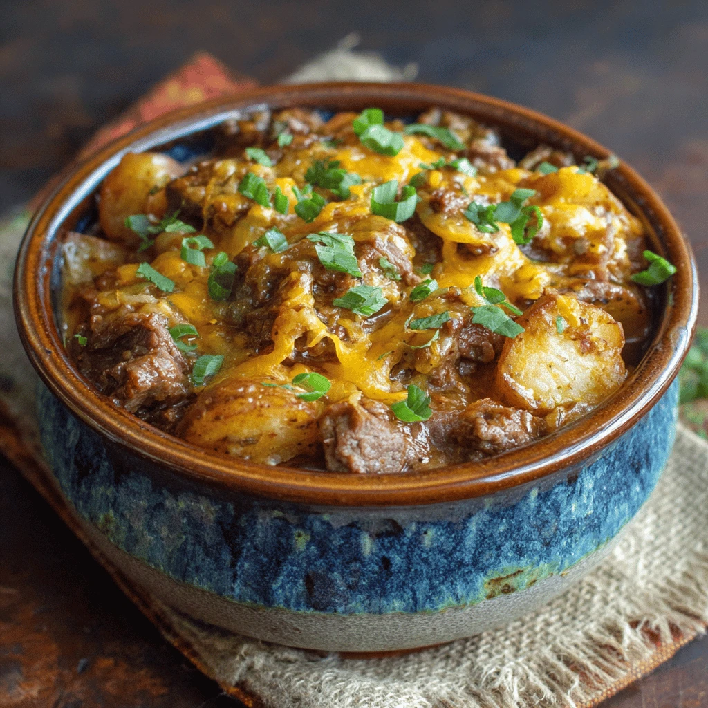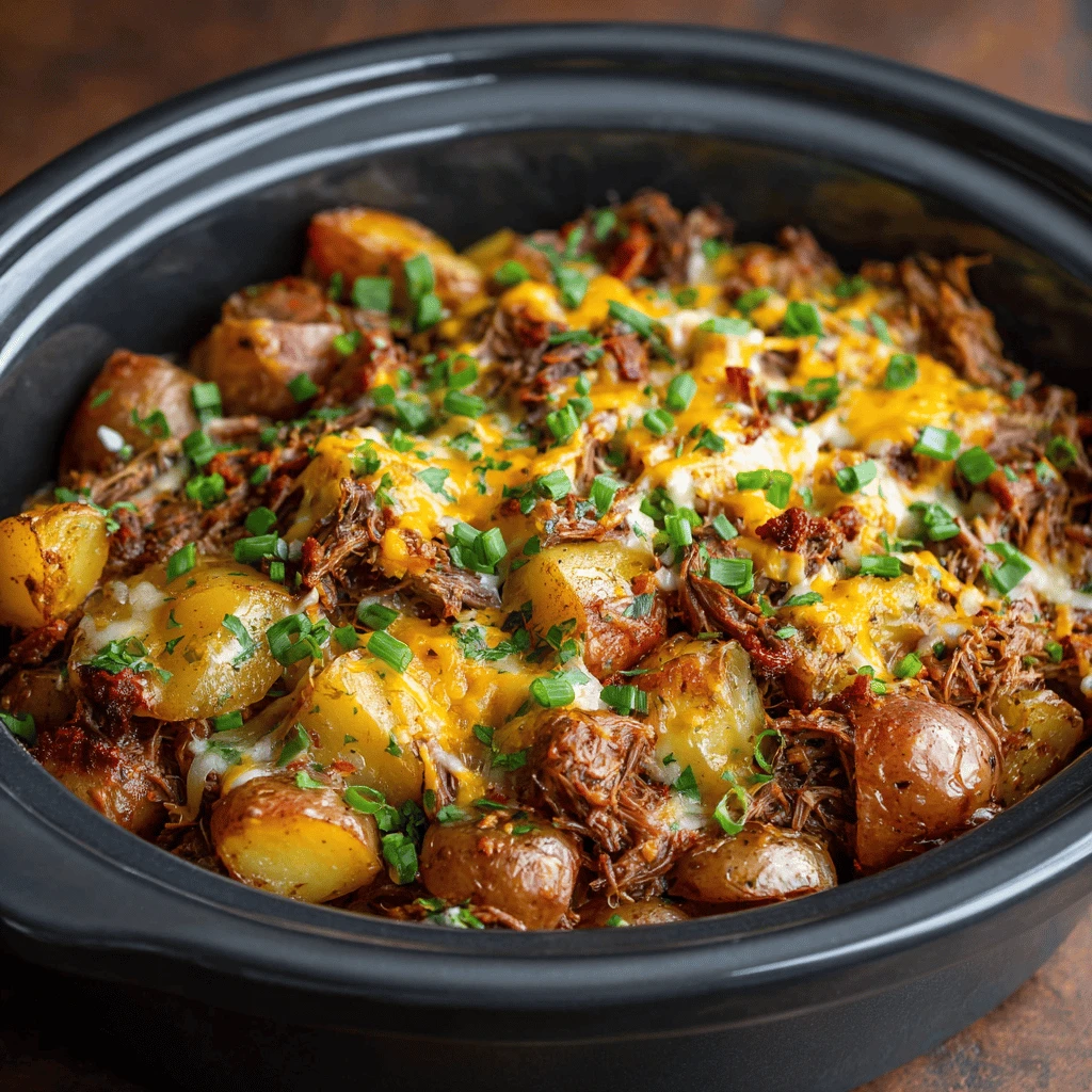 7. Cook: Cover the slow cooker and cook on low for 6-8 hours, or on high for 3-4 hours, or until the beef is tender and the potatoes are cooked through.