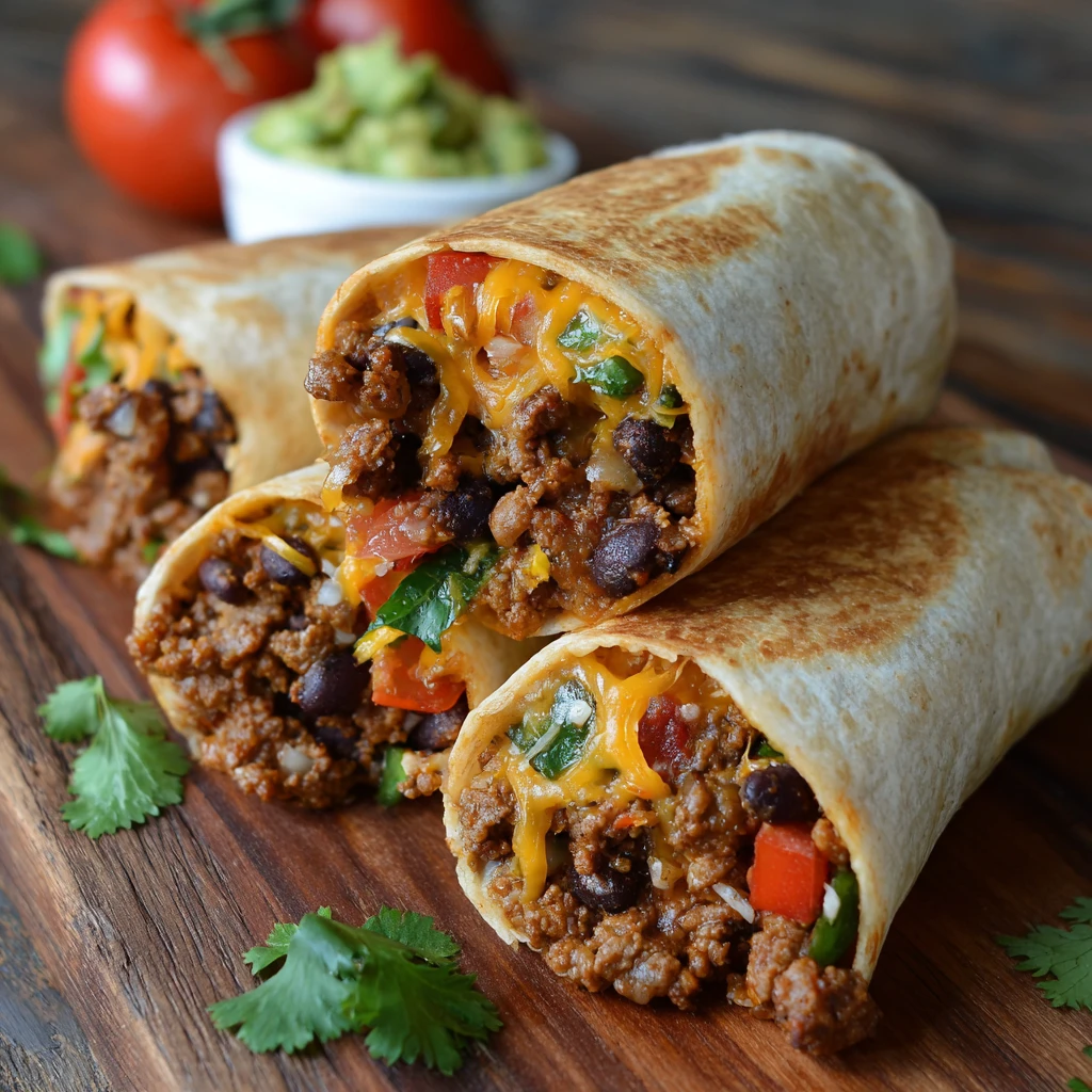 Make sure to drain any excess liquid from the beef and bean mixture before filling the tortillas. Avoid overfilling the burritos. Use a good quality tortilla that is not too thin.