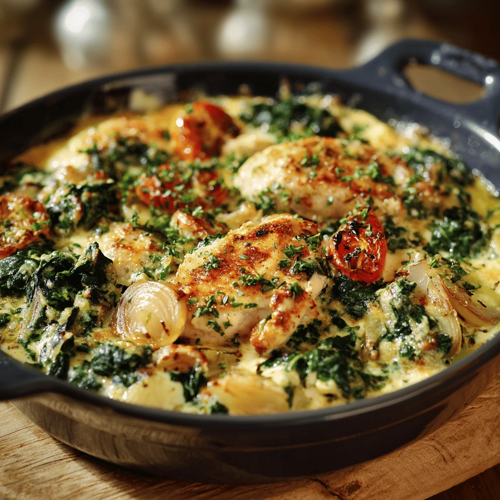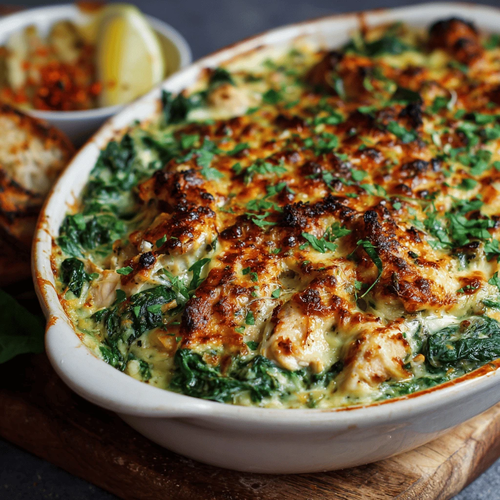 Spinach and Chicken Casserole is perfect for weeknight dinners, potlucks, and family gatherings.