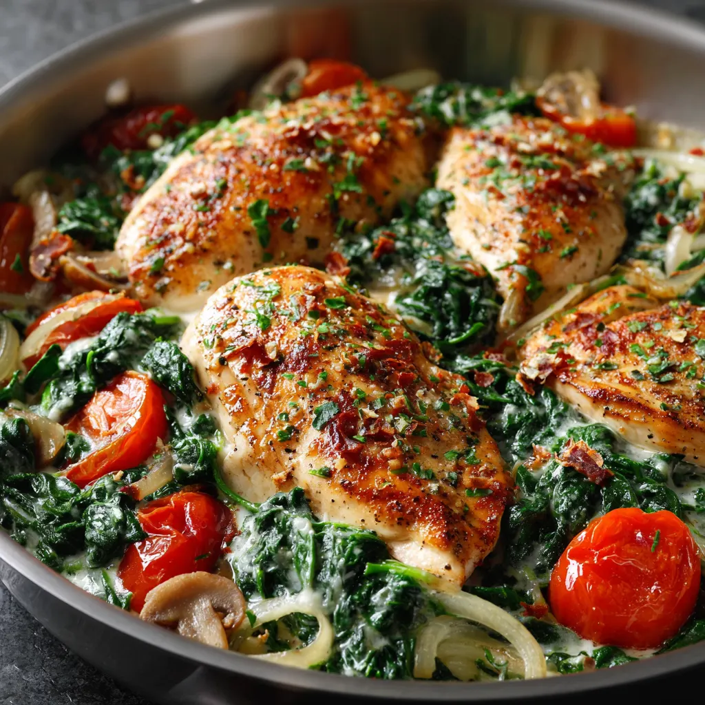 The Spinach and Chicken Skillet Dinner is the quintessential weeknight champion, offering a harmonious balance of lean protein, nutrient-dense greens, and a luxurious sauce that tastes like it spent hours on the stove. This one-pan wonder is designed for the modern home cook who refuses to sacrifice flavor for convenience. By searing the chicken to golden perfection and wilting fresh baby spinach into a savory base of garlic and herbs, you create a meal that is as visually stunning as it is delicious. Whether you are following a low-carb lifestyle or simply looking for a cozy meal to serve over pasta or rice, this recipe delivers a restaurant-quality experience with minimal cleanup.
