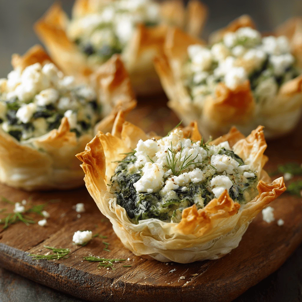 These spinach feta phyllo cups are best served warm or at room temperature. Consider arranging them on a platter with other appetizers for a visually appealing presentation.