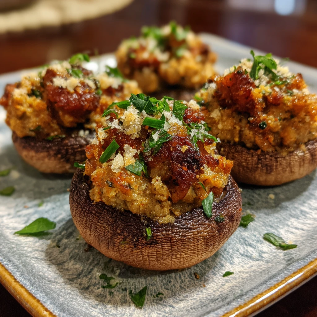 Stuffed Mushrooms with Sausage for Thanksgiving