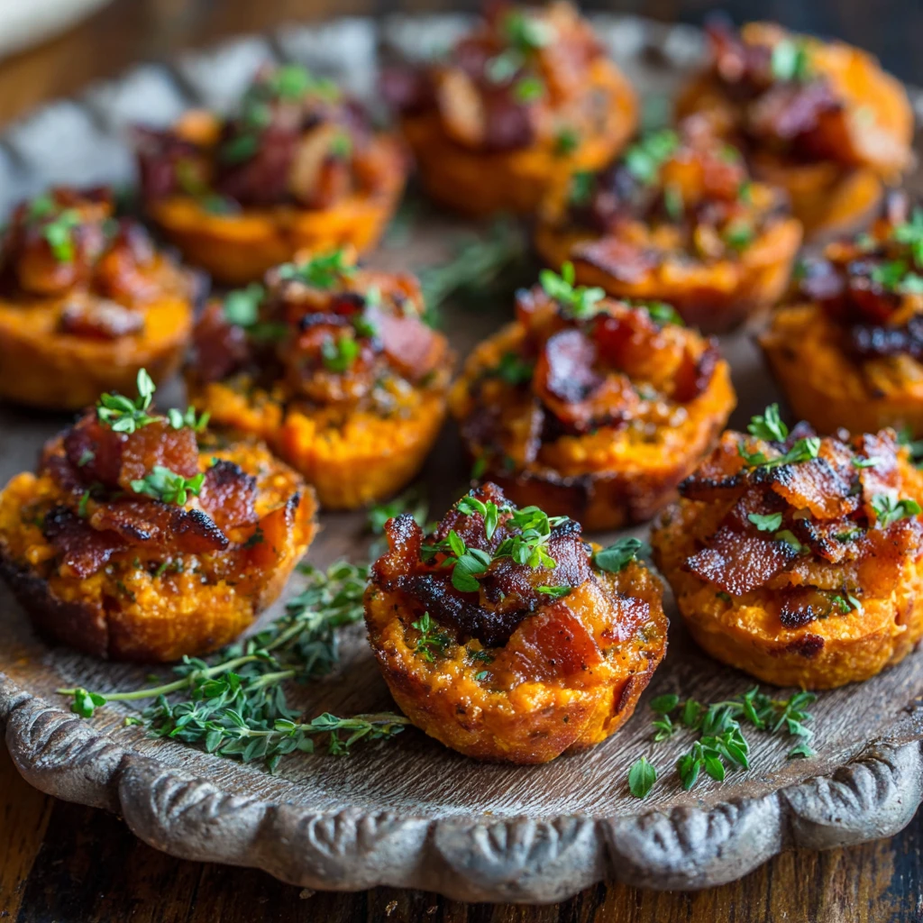 These sweet potato and bacon bites offer a delightful balance of flavors and textures. The sweetness of the sweet potato complements the saltiness and smokiness of the bacon perfectly.