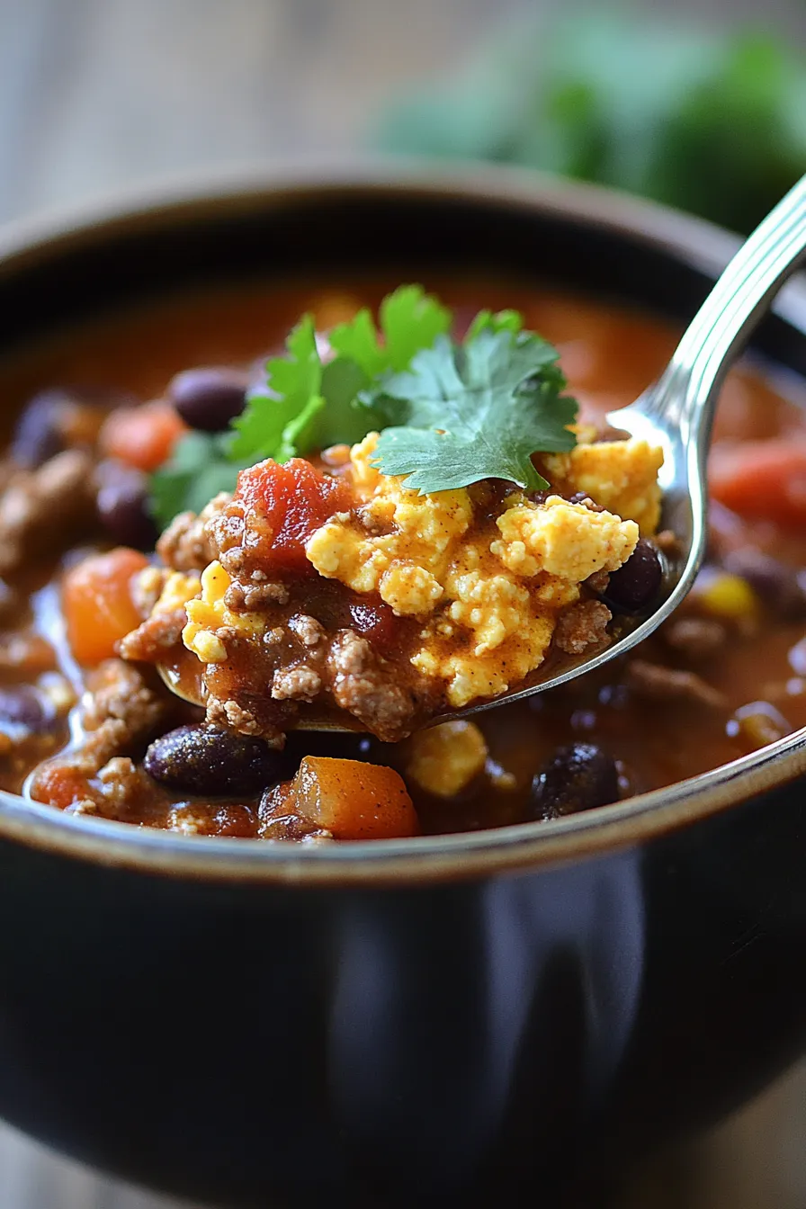 - Meat Swaps: Not a fan of ground beef? This chili works beautifully with ground turkey, chicken, or a mix of ground pork and beef. For a vegetarian or vegan version, swap the meat for extra beans (kidney, pinto), lentils, or plant-based crumbles, and use vegetable broth. Ensure to adjust the egg salad or omit it for vegan diets.